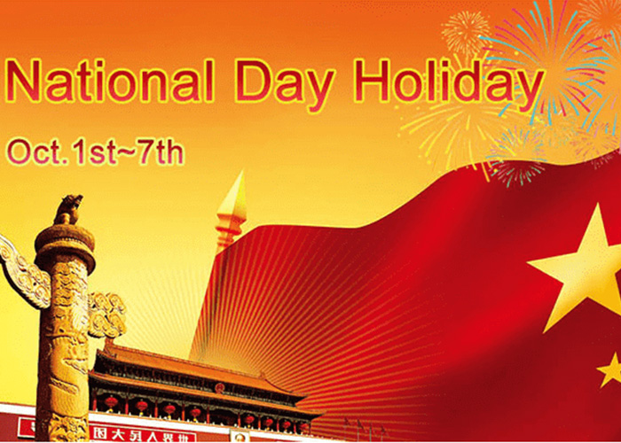 10월 1일 중국 국경일이며 직원들은 식 10월 1일부터 7일까지 공휴일입니다.