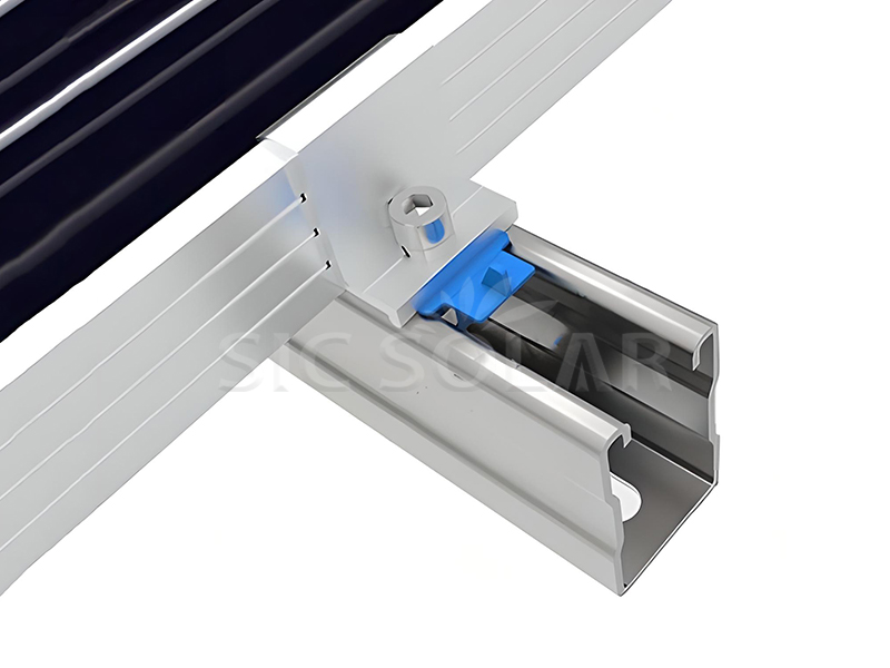 2️⃣ 엔드 클램프 위치 지정: 엔드 클램프를 태양광 패널 가장자리에 위치시키고 장착 구멍에 맞춥니다.