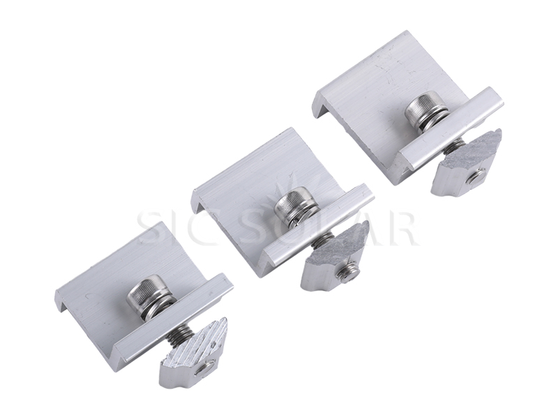 태양광 패널 엔드 클램프는 설치 트랙의 행 또는 그리드 끝에 태양광 패널을 단단히 고정하고 안정화하는 데 사용됩니다. 이 클램프는 태양광 패널이 제자리에 단단히 고정되도록 하고 바람, 눈, 온도 변화와 같은 환경 요인으로 인한 움직임을 방지하는 데 중요한 역할을 합니다.