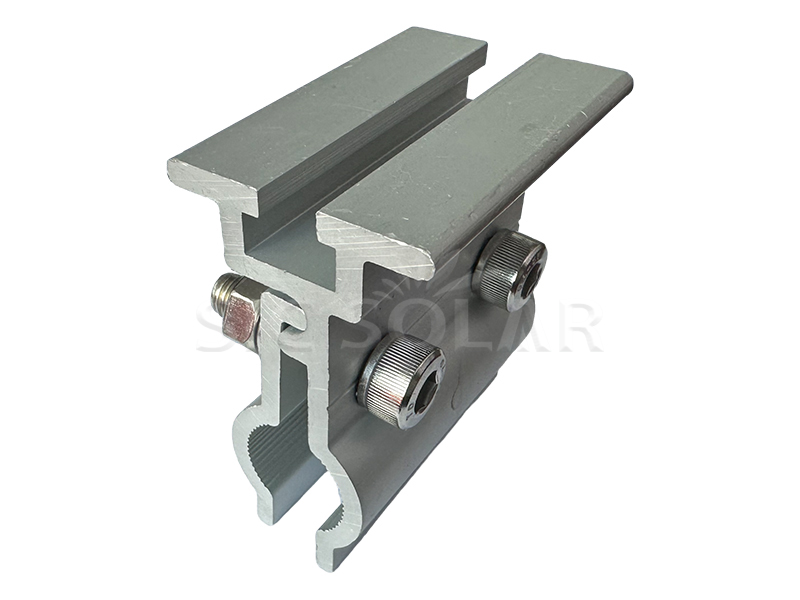 4️⃣ 레일 장착 – 스테인리스 스틸 볼트나 T볼트를 사용하여 태양광 장착 레일을 클램프에 고정하고 올바른 정렬을 보장합니다.