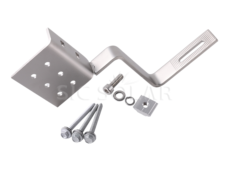 7️⃣ 레일과 패널 설치 – 알루미늄 장착 레일을 후크에 부착한 다음 클램프를 사용하여 PV 패널을 고정합니다.
