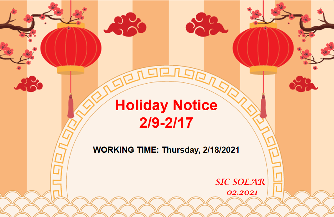2월 12일 중국 설날이고 직원들은 식 2월 9일부터 2월 17일까지 휴일입니다.