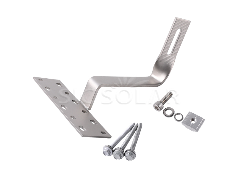 6️⃣ 레일 설치 – 볼트와 너트를 사용하여 PV 장착 레일을 후크의 브래킷 부분에 고정합니다.